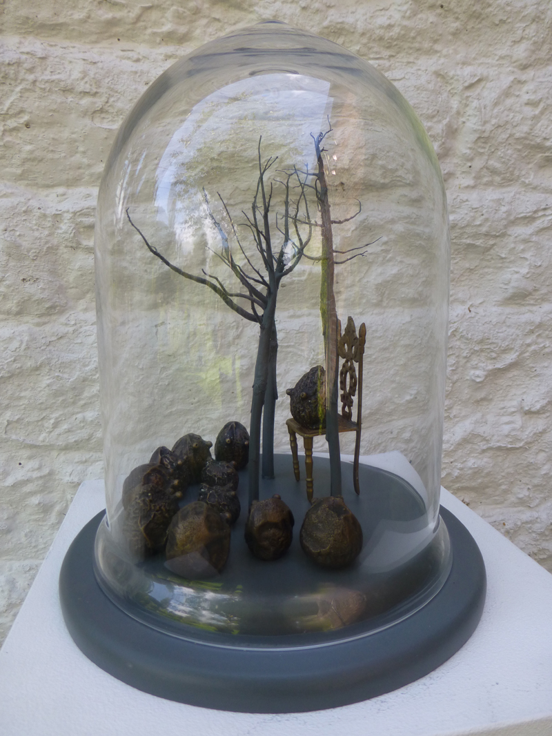 ‘Gathering’ 2014 Bronze, brass chair, Papaver somniferum roots, bell jar