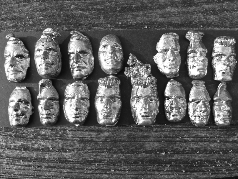 Heated up some lead on a ladle using a blow torch (mask firmly in place) and made some casts of the Action Man faces