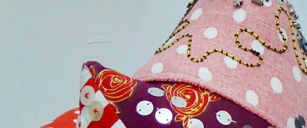 Spots, Stripes and Florals – Textile sculpture on a metal stand